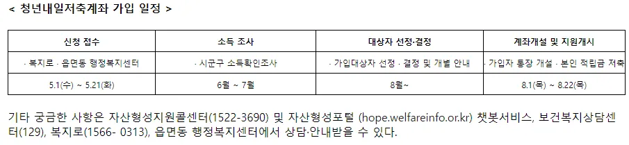 가입을 희망하는 청년은 신청 기간 내 주소지 시군구 읍면동사무소(행정복지센터)에서도 방문하여 신청 가능하며, 보건복지부가 운영하는 복지포털사이트 복지로(www.bokjiro.go.kr)에서도 5월 1일(수)부터 신청할 수 있습니다. 복지로(www.bokjiro.go.kr), 자산형성포털(hope.welfareinfo.or.kr)을 통해 필수 제출 서류 확인 및 양식 다운로드 가능하며 대상자 선정 결과는 소득 조사 등을 실시하여 8월 중에 개별 문자메시지로 안내할 예정입니다.